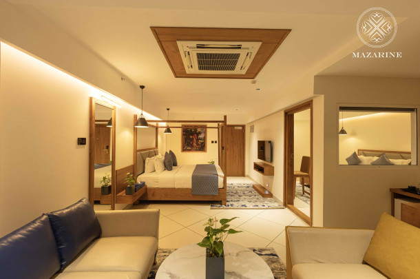 Elevate your stay with our luxurious Suite Rooms, designed for ultimate comfort and sophistication. Featuring a separate living area and bedroom, these expansive suites provide the perfect balance of privacy and style. Enjoy premium furnishings, a plush king-size bed, and an opulent en-suite bathroom with exclusive amenities. With added perks like complimentary high-speed Wi-Fi, a flat-screen TV, and personalized service, our suites are ideal for guests seeking a truly indulgent experience